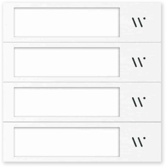 Tlačítkový modul MOD-4TL je osazen čtyřmi volacími dotykovými tlačítky se jmenovkami. Jmenovky i tlačítka jsou podsvícená LED diodami. Pokud nejsou všechna tlačítka využita, lze je zaslepit pomocí záslepky tlačítka MOD-ZAS-TL. Jestliže dáváte přednost klasickým mechanickým tlačítkům lze použít modul MOD-4TL-MECH, případně jeho alternativy s třemi, dvěma nebo jedním tlačítkem.