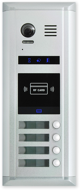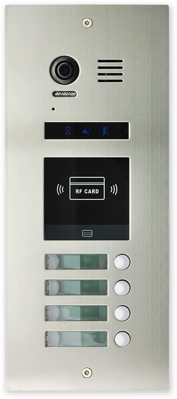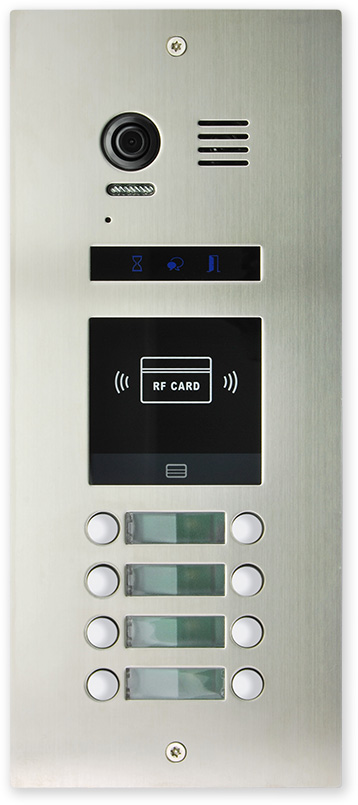 Pro větší bytové domy 4 a 8 tlačítkové venkovní jednotky se čtečkou karet a s možností rozšíření pomocí 12 a 24 tlačítkových expandérů.