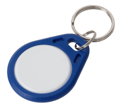 RFID čipová klíčenka, Mifare 13,56MHz. Standard: ISO / IEC 14443A. Barva modrá/bílá