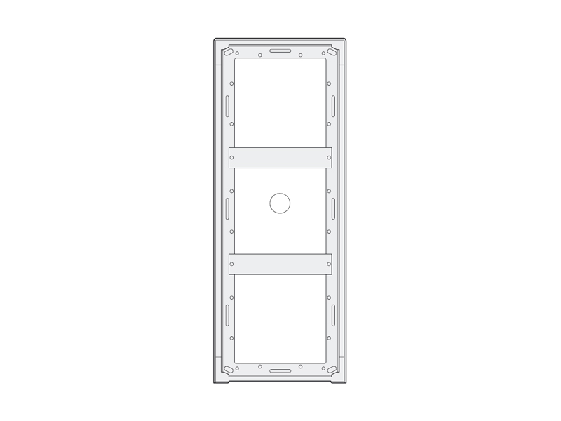 Povrchová montážní krabička se stříškou pro tři moduly dveřní stanice Matrix. Montážní krabička je vyrobena z nerezové oceli.