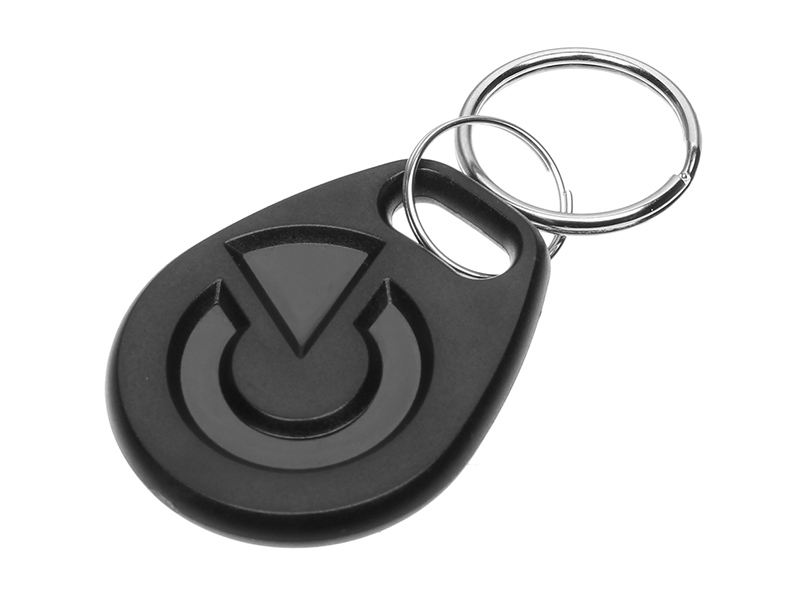 Přístupový čip k systému JABLOTRON 100+ ve tvaru přívěsku na klíče v černém provedení.