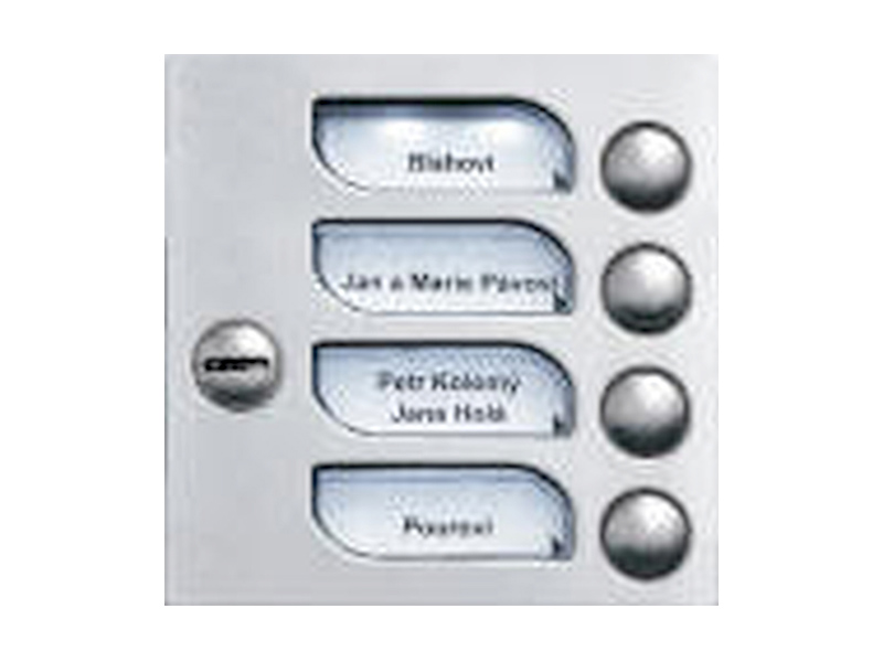 Modul 4 tlačítek přímé volby TT KARAT INOX, 2-BUS, se 4 jmenovkami, se zámkem, nerezavějící ocel.