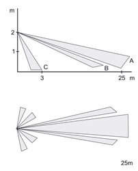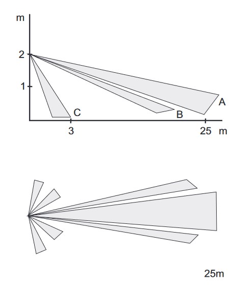 Alternativní čočka k PIR detektorům JA-110P, JA-120PB, JA-120PC, JA-120PW, JA-150P, JA-160PC, JA-180P, JA-180PB, JA-180W. Použitím chodbové čočky je zorné pole PIR detektoru protaženo tak, že detektor reaguje na pohyb ještě ve vzdálenosti do 25 m. Zorné pole je zúženo na cca 3 m.