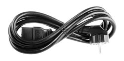 Standardní napájecí kabel 230 VAC/10 A s lomenou zástrčkou, standardní vidlicí a konektorem IEC-320-C14 délky 1,5 m pro připojení zdroje, počítače, rekordéru CCTV apod.