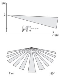 Alternativní čočka k PIR detektorům JA-110P, JA-120PB, JA-120PC, JA-120PW, JA-150P, JA-160PC, JA-180P, JA-180PB, JA-180W s odolností proti zvířatům. Má pouze horní vějíř 120°/12m a nepokrývá podlahu a může tak eliminovat pohyb drobných zvířat na podlaze.
