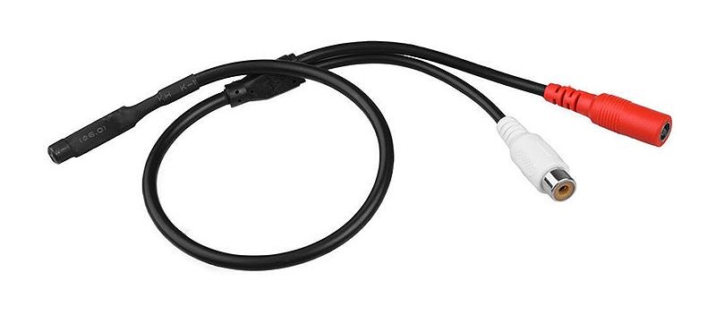 Miniaturní mikrofon s integrovaným zesilovačem, vysoká citlivost, nízká hladina šumu, vhodný ke kamerám. Napájení 9 až 12 V=.