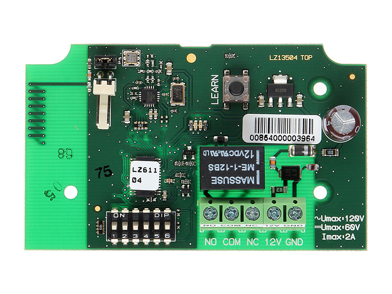 Bezdrátový signalizační modul JA-151N (2 A/60 V) kopíruje stav vybraného výstupu PG (PG 1 až PG 32). Konkrétní výstup PG je adresován na modulu pomocí DIP switchů.