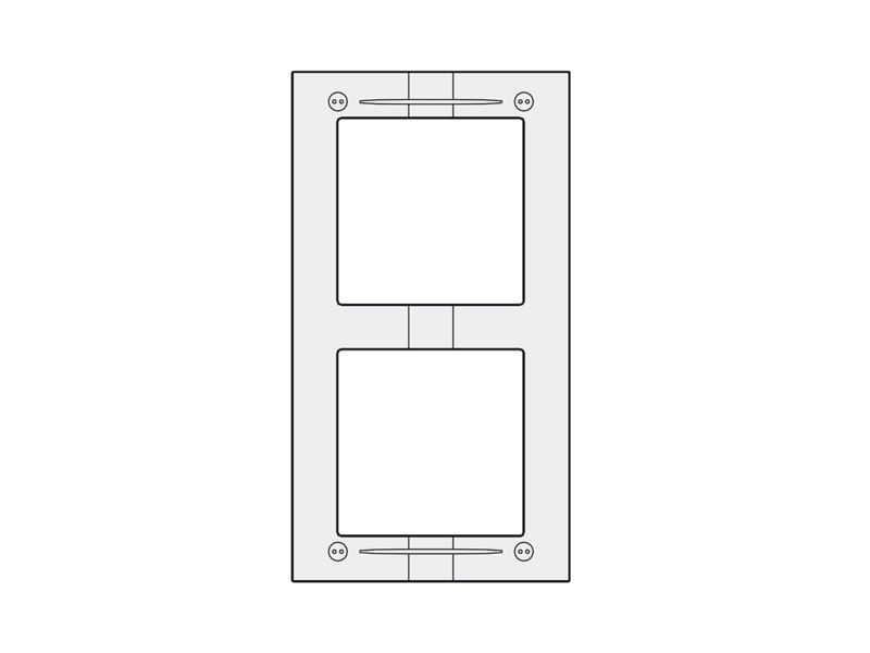 Přední instalační rámeček pro dva moduly dveřní stanice série Matrix určený k zajištění 2 modulů v instalační krabičce. Montáž rámečku do instalační krabičky se provádí 4 šrouby.