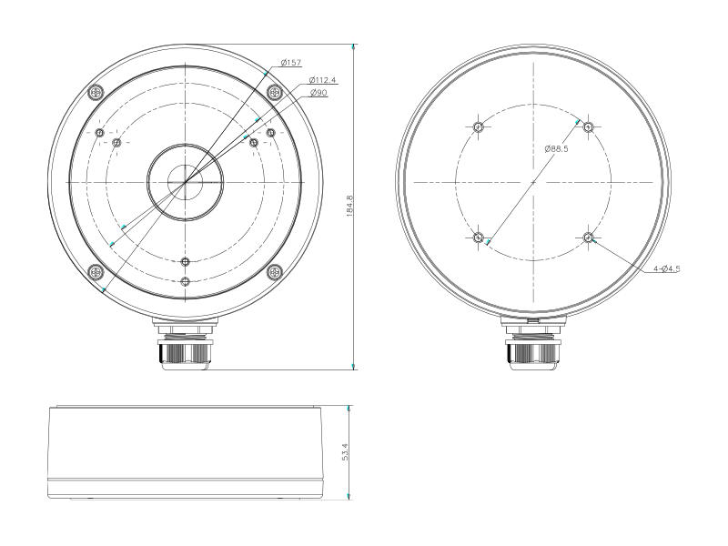 Univerzální patice pro kamery. Rozměry: průměr 157mm x výška 54mm. Bílá barva.