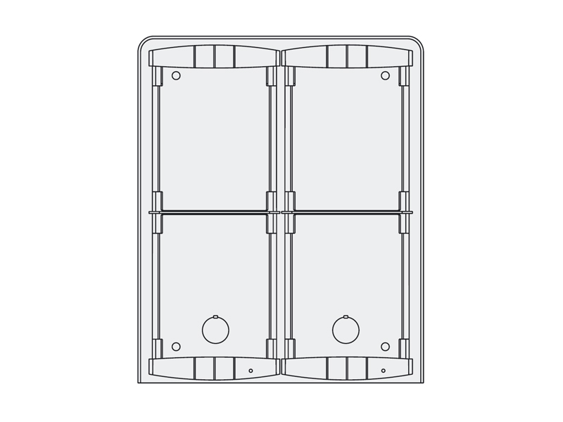 Povrchová montážní krabička se stříškou pro čtyři moduly dveřní stanice série Profilo v rozložení 2x2. Vyrobená z hliníku.
