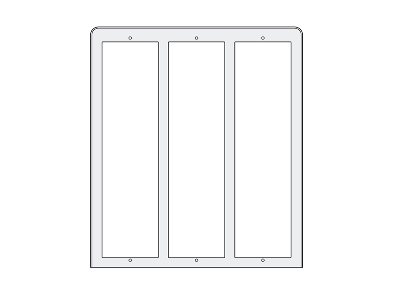 Stříška proti dešti pro devět modulů dveřní stanice série Profilo v rozložení 3x3. Používá se v kombinaci se třemi zápustnými instalačními krabičkami PL73. Stříška je vyrobena z hliníku.