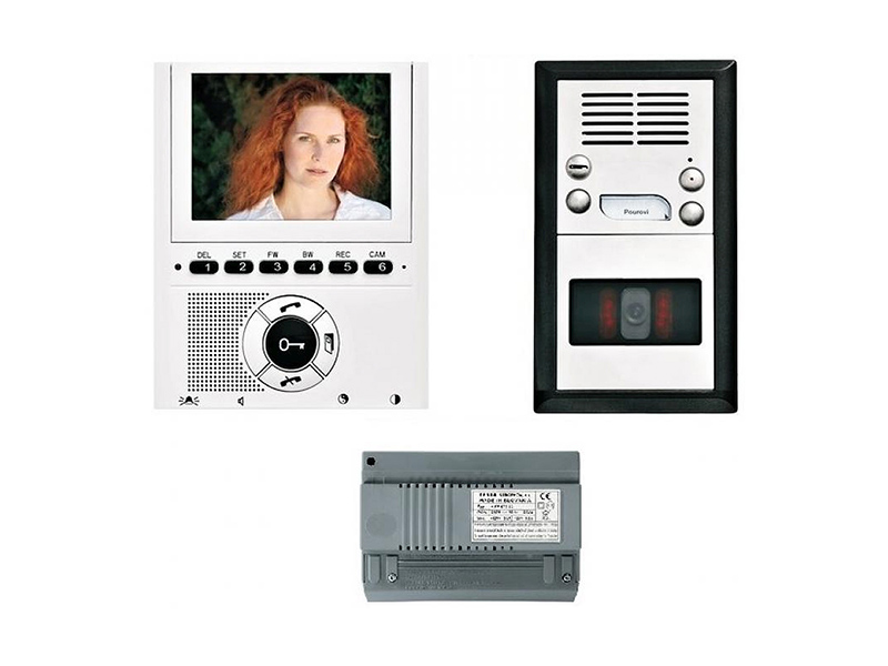 Videosada KARAT BUS -HandsFree pro 1 účastníka, nerez INOX. Sada obsahuje 1ks videovrátný + 1ks barevný HandsFree videotelefon + 1ks síťový zdroj.