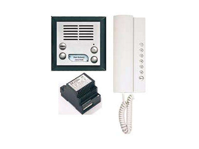 Audiosada 2-BUS pro 1 účastníka KARAT INOX, nerezavějící ocel. Sada obsahuje 1ks elektrický vrátný + 1 ks domácí telefon + 1 ks síťový zdroj (umožňuje komunikaci s druhým domácím telefonem). Možno doplnit o druhý audiotelefon, interkom mezi domácími telefony.