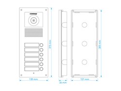 6-tlačítková dveřní stanice s povrchovou úpravou z eloxovaného hliníku. Kamerový modul je možné horizontálně i vertikálně nasměrovat pod úhlem až 20°. Dveřní stanici lze použít s ochrannou stříškou S-7P nebo s povrchovou instalační krabičkou S-7N.