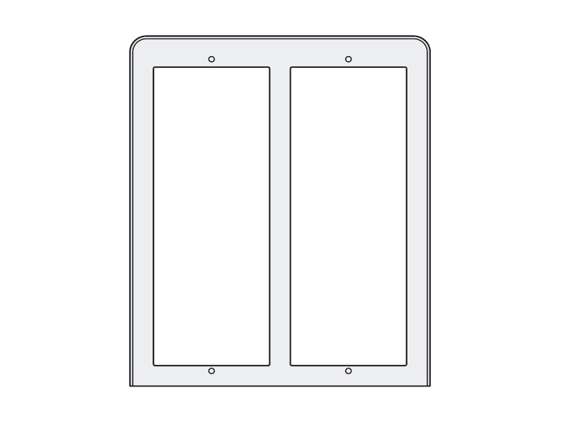 Stříška proti dešti pro čtyři moduly dveřní stanice série Profilo v rozložení 2x2. Používá se v kombinaci se dvěma zápustnými instalačními krabičkami PL72. Stříška je vyrobena z hliníku.