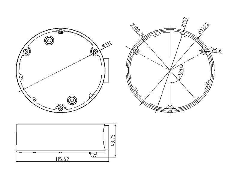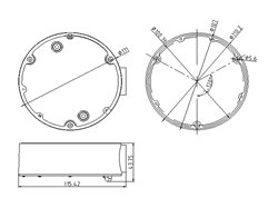 Montážní patice pro dome kamery o průměru 110mm. Rozměry: průměr 111mm x výška 42mm. Černá barva.