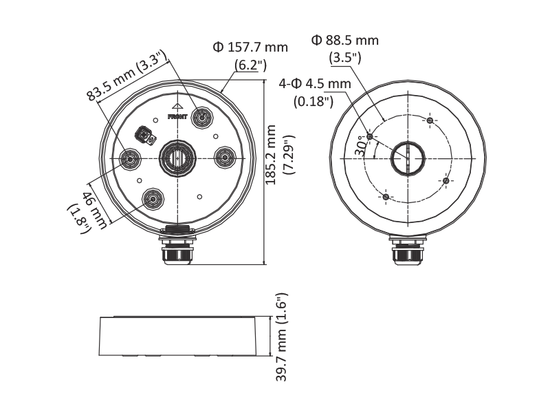 Montážní patice pro PTZ kamery (4"). Rozměry: průměr 157mm x výška 40mm. Bílá barva.