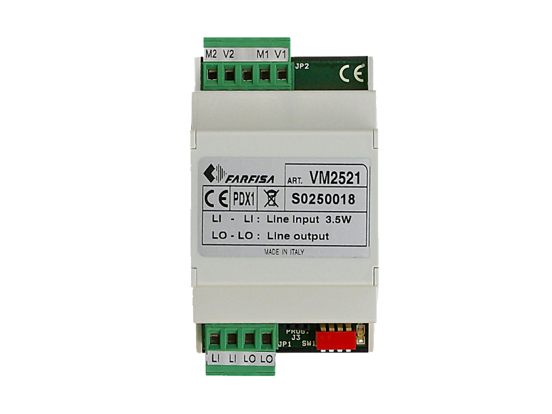 Modulátor se dvěma vstupy pro analogové kamery pro připojení těchto kamer do systému domácích telefonů DUO. Lze tak provázat monitorování prostoru s domácími videotelefony. Pro kompatibilní dveřní stanice lze video z těchto kamer automaticky zobrazit při volání.