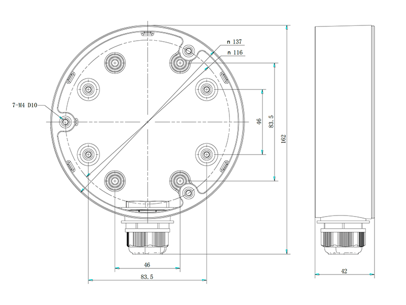 Montážní patice pro dome kamery o průměru 135mm. Rozměry: průměr 137mm x výška 42mm. Černá barva.