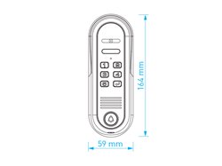 Odolná celokovová antivandal dveřní stanice se skrytou kamerou a s kódovou klávesnicí pro přímou obsluhu 2 výstupních relé, např. pro otevření vstupní branky a vjezdové brány. Ovládání 2 relé přímo z videotelefonu je možné pouze s použitím videotelefonů CDV-70MF. Stanice je vybavena úhlovou instalační paticí.