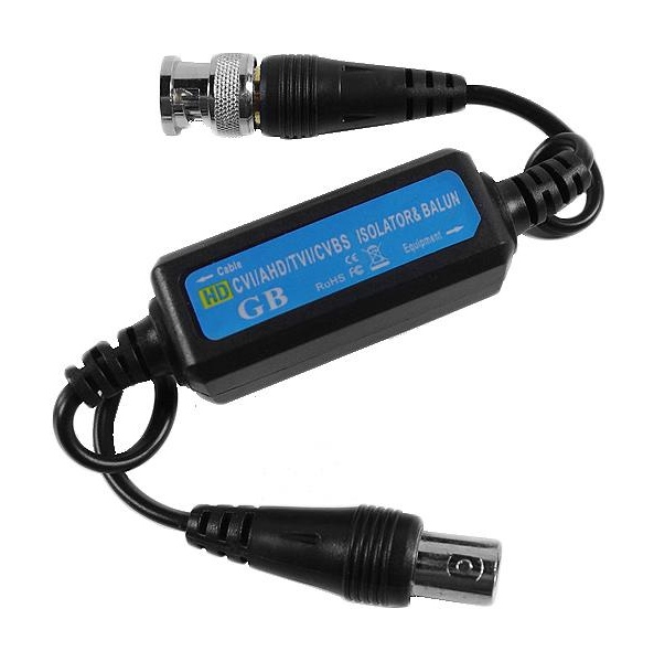 Galvanický oddělovač HDCVI/TVI/AHD/CVBS videosignálu, snižuje rušení signálu mezi body s různými zemní potenciály, přepěťová ochrana, BNC konektory (samec-samice).