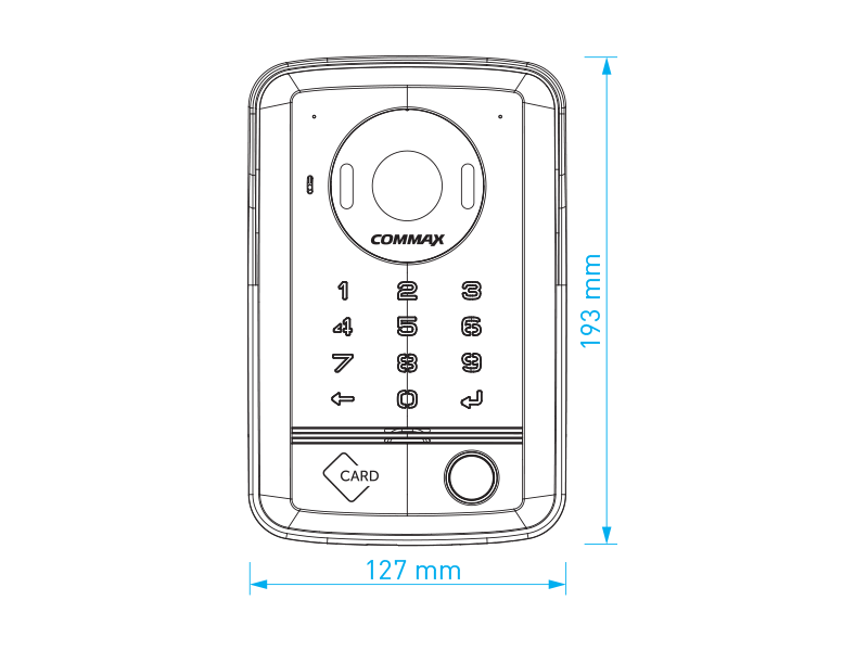 Dveřní stanice vybavená kódovou klávesnicí a RFID čtečkou (Mifare 13,5MHz) pro přímou obsluhu 2 výstupních relé, např. pro otevření vstupní branky a vjezdové brány. Snímače s kapacitní technologií zaručují dlouhou životnost produktu. Jednotlivá tlačítka jsou při aktivaci modře podsvětlená. Kamerový modul je možné horizontálně i vertikálně nasměrovat pod úhlem až 13°. DRC-40DK má kamerový modul s obrazovou normou CVBS je tedy vhodná pro použití se všemi typy videotelefonů. Dveřní stanice je určena pro povrchovou instalaci.