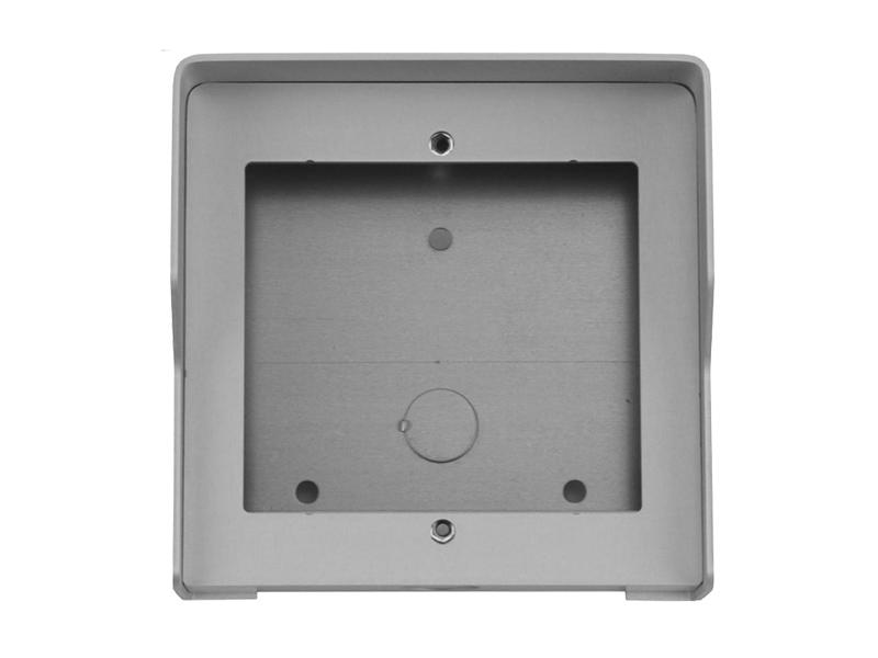 Kovová povrchová instalační krabička se stříškou z hliníku určená pro jeden modul dveřní stanice série Alba.