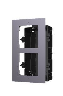 Komplet plastové zápustné instalační krabičky pod omítku a litinového rámečku pro 2 moduly; možnost instalace více krabiček vedle sebe. Rozměry krycího rámečku 236 x 124 x 4 mm; rozměry plastové montážní krabičky 219 x 107 x 32,7mm; určeno pro IP systém i 2-vodičový systém.