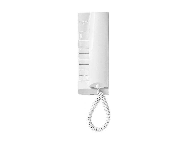 Domácí telefon pro analogový systém 4+n, s bzučákem pro interkomovou komunikaci. Telefon má 6 pozic pro doplňková tlačítka EX301.