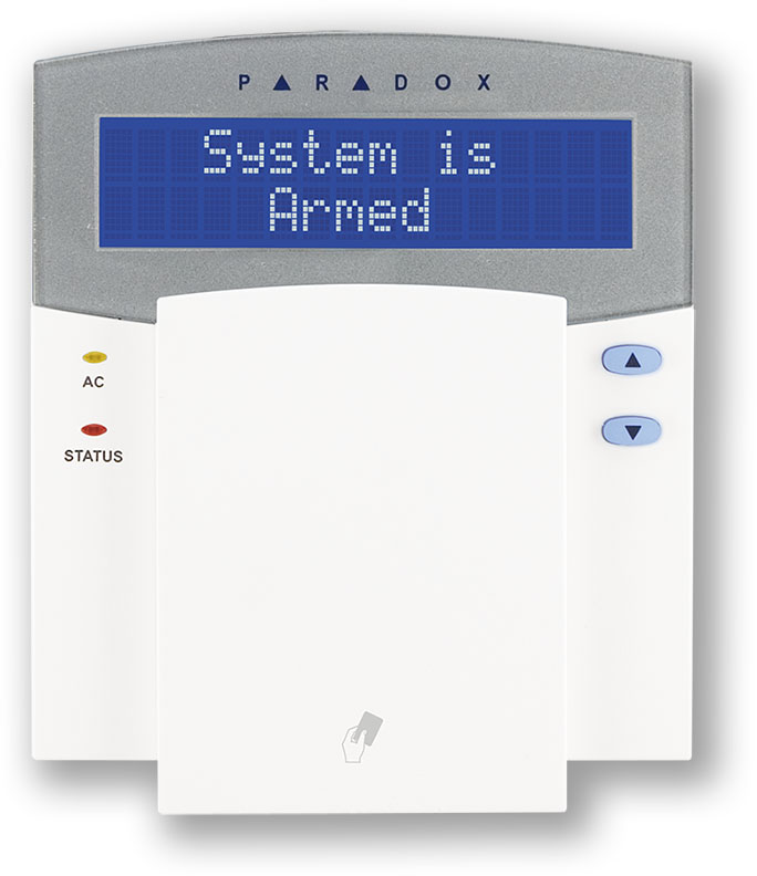 LCD klávesnice s dvouřádkovým displejem určená pro ovládání a zobrazování informací o stavu ústředny DIGIPLEX. Součástí klávesnice je zabudovaný kompletní přístupový bod nadstavby ACCESS CONTROL se čtečkou PROXIMITY PARADOX. Čtečka je zabudována přímo uvnitř klávesnice a karta (klíčenka) se přikládá v oblasti numerických kláves.