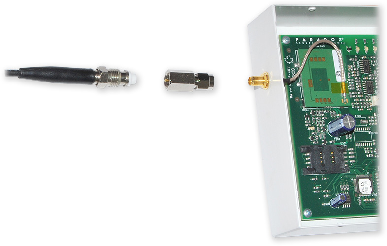 Anténní redukce pro GSM komunikátor PARADOX PCS100/200 pro připojení antény s konektorem FME-F, jedná se o dříve prodávané antény.