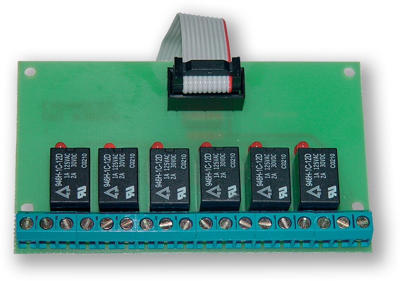 Výstupy: 6 x relé, NO/NC, 2 A / 30 V