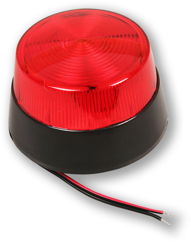 Blikač používající výbojku s vysokou intenzitou svitu, stroboskopický interval asi 0,5 s., v červeném barevném provedení.
