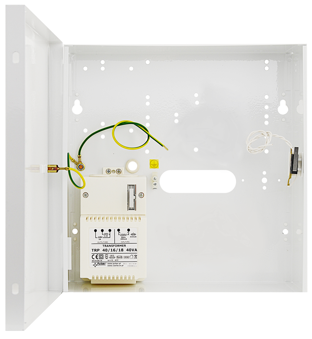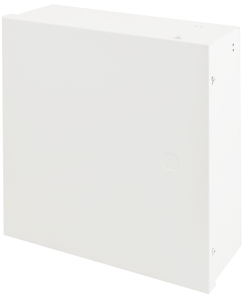 Univerzální malý plechový box pro všechny ústředny nebo moduly. V zádech boxu jsou umístěny přesné otvory pro vložení distančních sloupků k připevnění ústředen nebo modulů. Dvířka jsou uchycena pomocí nasouvacích pantů, na přední straně je předlisovaný otvor pro mechanický zámek. Ze zadní strany boxu jsou otvory pro uchycení na zeď, které jsou osazeny plastovými distančními sloupky. Součástí dodávky je zasouvací tamper, transformátor 40VA, 2 vodiče pro propojení napájení 16 V ~ z transformátoru do ústředny, zemnící vodiče se zemnící svorkou na boxu. Box M je také možné zakoupit bez transformátoru, nebo s transformátorem 20 VA. Do boxu je možné umístit akumulátor s kapacitou maximálně 7 Ah.