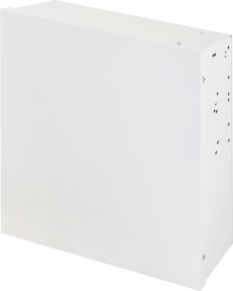 Univerzální střední plechový box pro všechny ústředny nebo moduly. V zádech boxu jsou umístěny přesné otvory pro vložení distančních sloupků k připevnění ústředen nebo modulů. Dvířka jsou uchycena pomocí nasouvacích pantů, na přední straně je předlisovaný otvor pro mechanický zámek. Ze zadní strany boxu jsou otvory pro uchycení na zeď, které jsou osazeny plastovými distančními sloupky. Součástí dodávky je zasouvací tamper, 2 vodiče pro propojení napájení 16 V ~ z transformátoru do ústředny, zemnící vodiče se zemnící svorkou na boxu. Box S je také možné zakoupit bez transformátoru, nebo s transformátorem 20 VA. Do boxu je možné umístit akumulátor s kapacitou maximálně 18 Ah.