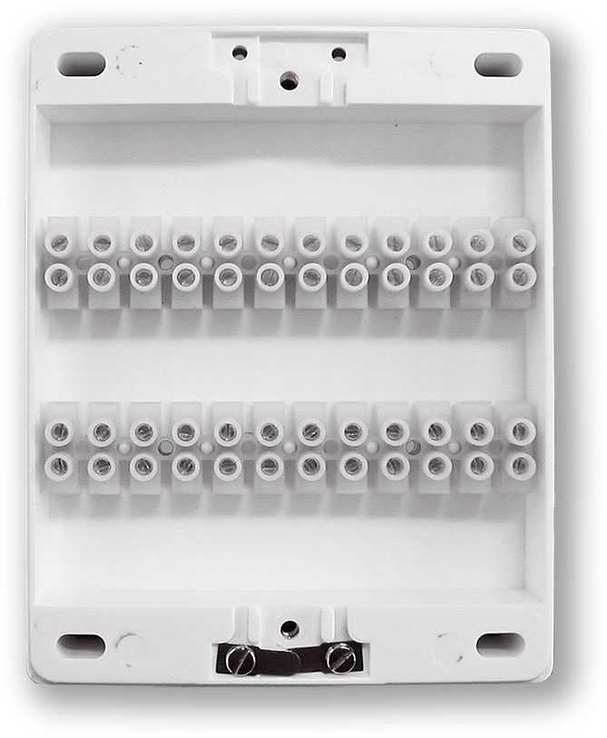Rozvodná krabice s 24 šroubovacími svorkami a mechanickým NC kontaktem, tamper.