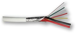Stíněný kabel typu "lanko", 2 žíly průřez lanka 1 mm2 + 4 žíly 0,22 mm2, pro slaboproudé rozvody EZS v balení po 100 m délky, značení délky na plášti kabelu.