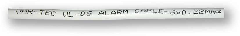 Stíněný kabel typu "drát", 4 žíly, průměr drátu 0,5 mm, pro slaboproudé rozvody EZS v balení po 100 m délky, značení délky na plášti kabelu.