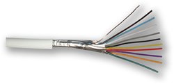 Stíněný kabel typu "drát", 6 žil, průměr drátu 0,5 mm, pro slaboproudé rozvody EZS v balení po 100 m délky, značení délky na plášti kabelu.