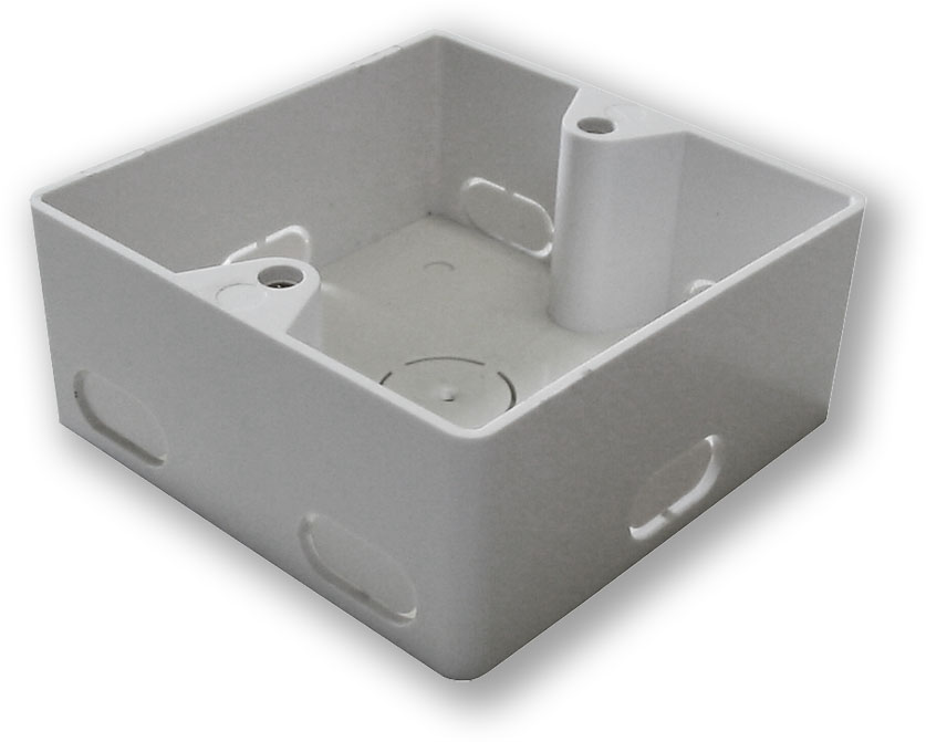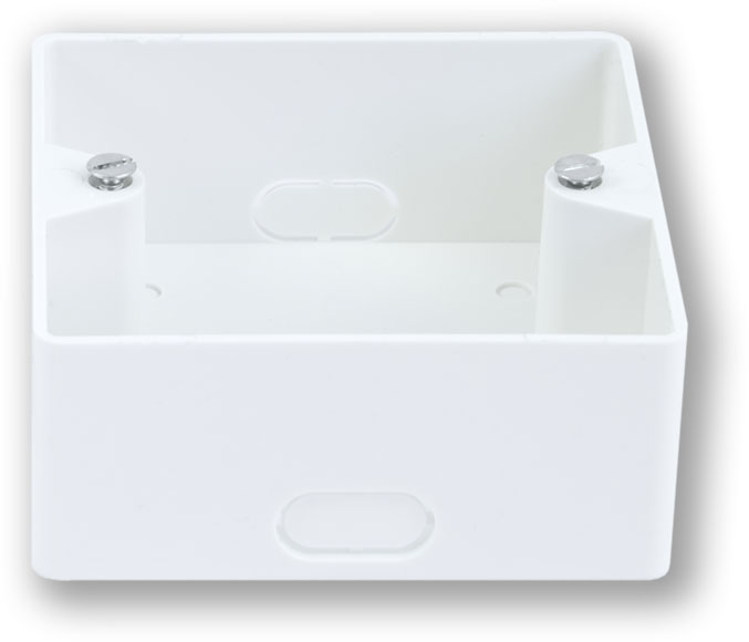 Krabice/box pro povrchovou montáž zásuvky WO-332, krabice lze rovněž použít s rámečkem WO-002. Rozteč šroubů je shodná s instalační krabicí KO68.