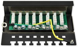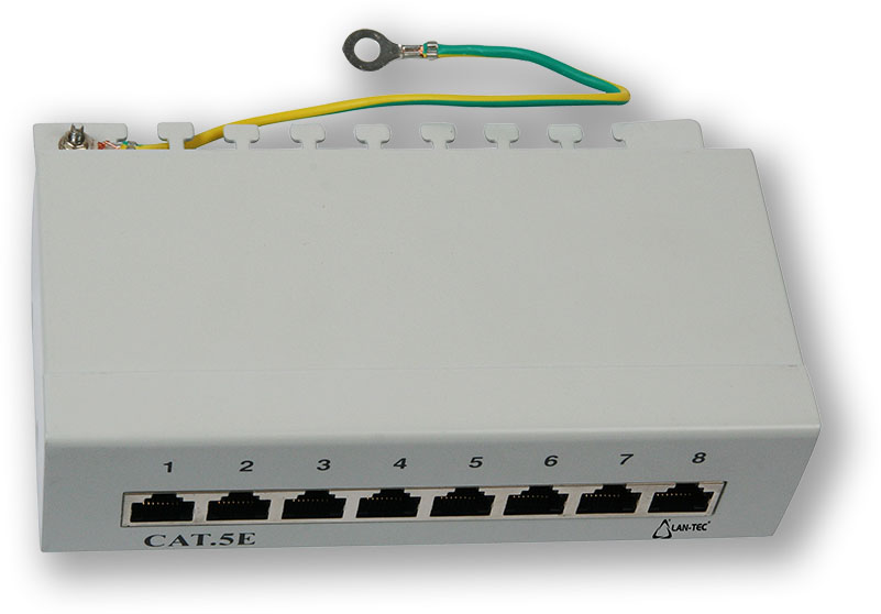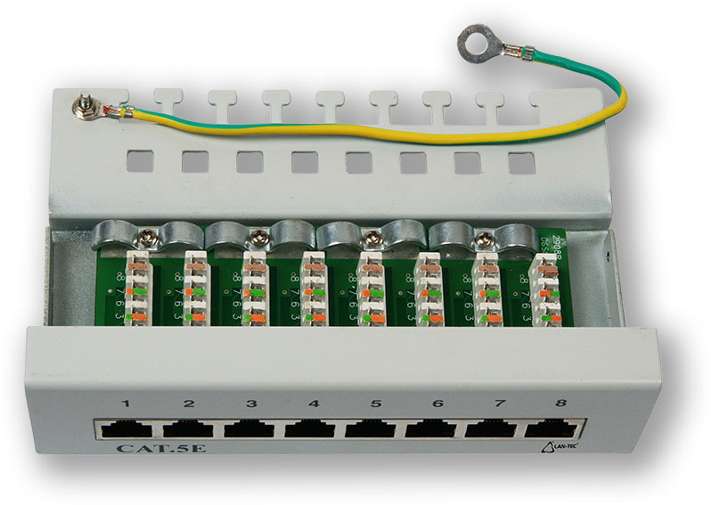 Samostatný 8 portový patch panel Cat.5e STP pro montáž na zeď. Patch panel je osazen zářezovými svorkovnicemi typu LSA+ (Krone). K zapojení vodičů je nutné použít nástroje pro tento typ svorkovnice.