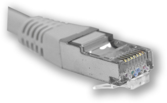 Patch kabel (propojovací kabel) s konektory RJ45, určený pro připojení síťových zařízení.