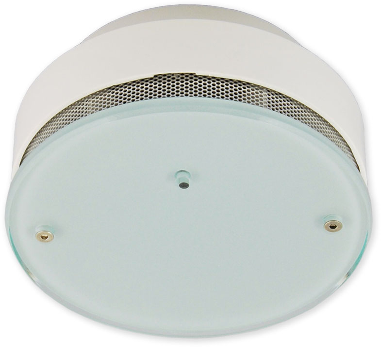 Baterií napájený optickokouřový detektor s vestavěnou sirénou prémiové kvality, německá výroba. Signalizace Požáru i Poruchy. Dodáván s 9V baterií, paticí, šrouby a hmoždinkami k montáži. Designové provedení vrchní části - sklo.