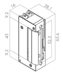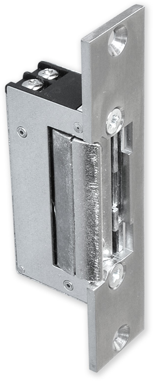 Elektromechanický zámek, který propouští přes horní západku běžného zámku a montuje se do zárubní dveří. Po přivedení napětí odemčeno. Součástí dodávky je čelní panel, který slouží pro uchycení zámku do zárubní.