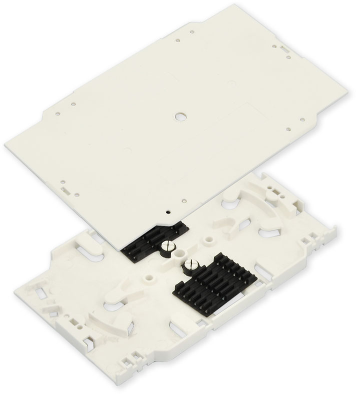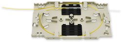 Optická kazeta pro uložení, skladování a ochranu optických vláken před mechanickým poškozením. V kazetě jsou instalovány 2 držáky svárů, každý pro 6 vláken. Držáky sváru jsou rozměrem určeny pro uchycení smrštitelných ochran OPS-045 nebo OPS-060. Kazeta je určená pro vložení do optických rozvaděčů nebo optických van.