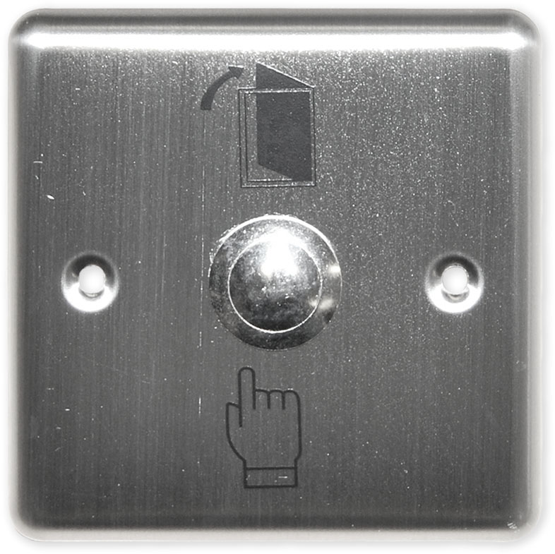 odchodové tlačítko s NO kontaktem v nerezovém kovovém provedení s piktogramem otevření dveří