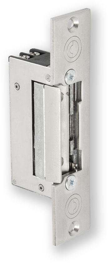 Elektromechanický zámek, který propouští přes horní západku běžného zámku a montuje se do zárubní dveří. Po přivedení napětí odemčeno. Součástí dodávky je čelní panel, který slouží pro uchycení zámku do zárubní. Pomocí mechanické západky, lze trvale odblokovat.