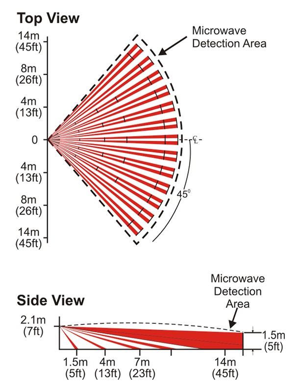 PIR+MW, MW-AM, dosah 14 m