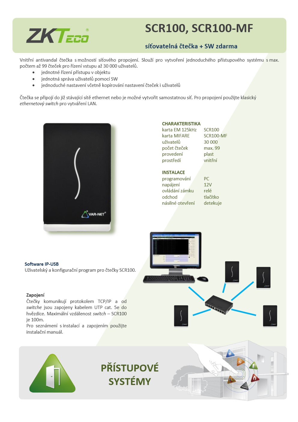 Přístupový systém umožňující řízení pohybu osob v rozsáhlých objektech. Maximálně 99 čteček, 30 000 uživatelů, propojení po sběrnice TCP/IP. Tyto parametry dostačují na řízení přístupu v malých a středních firmách, nebo průmyslových budovách. Systém nemá centrální jednotku a každá čtečka pracuje samostatně. Pokud je zajištěno napájení, je provoz čteček nezávislý. Síť slouží pouze pro nastavení, programování a stahování událostí do instalačního nebo uživatelského programu SW control. Čtečka zajišťuje kompletní ovládání dveří, obsahuje relé pro otevření, vstup pro odchodové tlačítko a poplachový výstup pro případ násilného otevření dveří.