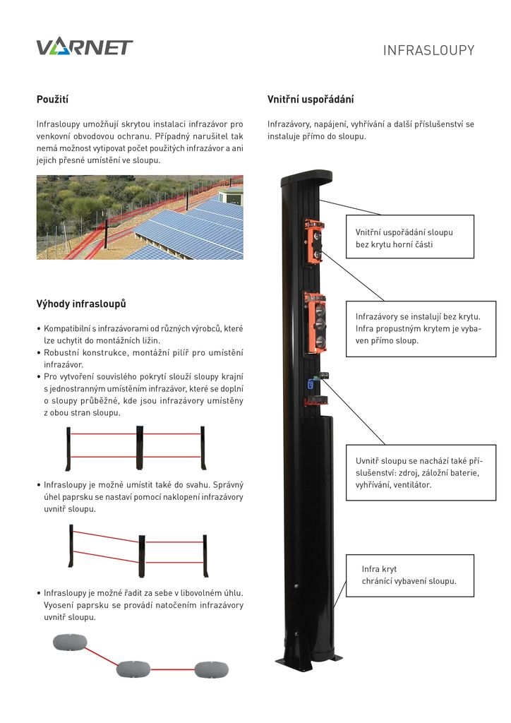 Jednostranný montážní sloup pro infrazávory VAR-TEC a jiné. Sloup je tvořen nosným hliníkovým profilem a IR propustným pláštěm.